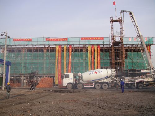该工程自2009年12月26日正式开工建设以来,项目部周密组织,科学安排,抓住春节前天气晴好的有利时机,掀起了施工热潮。项目部一期工程共完成了202亩建设用地近13万立方米的土方外运、场地平整及1000米环形施工道路的铺设和300米施工围墙的砌筑。临时用电全部架设到位,临时用水及污水排放管线已施工完毕,为施工创造了良好的条件。2010年1月20日,1#、2#、3#楼开始基础施工,争取春节前达到基础出土的形象进度。