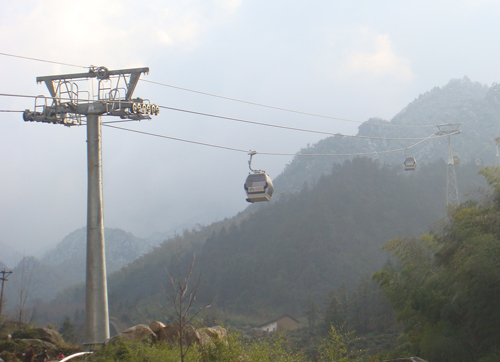 九华山花台索道的安装工程是十七冶机电公司继完成黄山云谷索道工程以后又一次承担这种国际上最先进的循环脱挂抱索器吊厢式索道工程,也是十七冶到目前为止完成的最长的一条旅游观光索道。