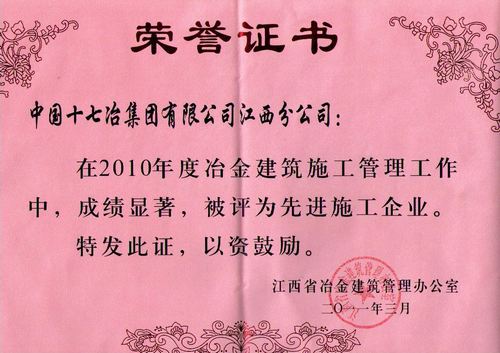 日前,江西省冶金建设管理局召开2011年江西冶金建设工作会议。江西分公司及分公司经理程彪分别荣获“先进施工企业”和“优秀项目经理”称号,受到大会表彰。