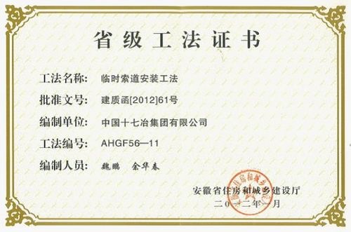 这五项工法分别是《临时索道安装工法》、《非开挖水平定向钻进管线铺设施工工法》、《真空联合堆载预压施工工法》、《环型双膛竖式石灰窑施工工法》和《DOKA大模板提升式施工工法》。