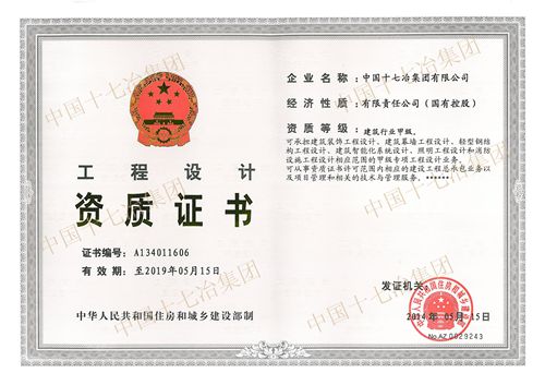 5月26日,公司从国家住建部捧回了房屋建筑工程施工总承包特级资质证书,中国十七冶集团有限公司成为马鞍山市第一家、安徽省第二家具备该资质的企业。同时,公司还获得了建筑行业甲级设计资质。这是十七冶人孜孜不倦为之奋斗实现的战略目标,在十七冶发展史上具有里程碑意义。