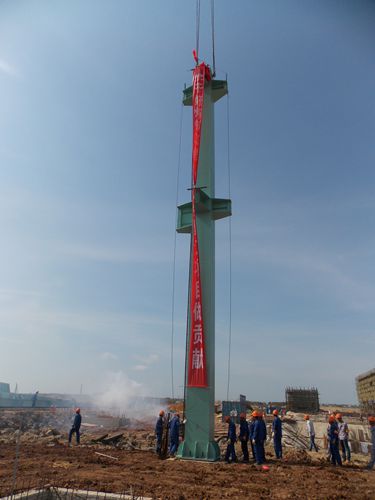 宝钢湛江炼钢工程位于广东省湛江市东海岛,属典型亚热带海洋性季风气候,常年的强对流天气所形成的雷雨大风对钢结构安装影响较大,“防风、防台、防雷”是安装过程中的控制重点。项目部充分发扬“高效严谨、精细务实”的企业作风,以“一天也不耽误、一天也不懈怠”的进取精神,扎实开展吊装前的各项准备工作,顺利完成炼钢主厂房第一吊,为后续炼钢钢结构安装的稳步推进打下坚实的基础。