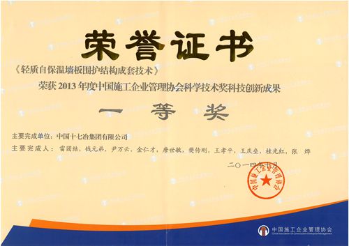 同时,公司还有2项成果获得2013年度科技创新成果奖:十七冶工程科技公司完成的《轻质自保温墙板围护结构成套技术》荣获科学技术奖科技创新成果奖一等奖;风力与太阳能发电工程技术公司完成的《海上大型测风塔施工综合技术》荣获科学技术奖科技创新成果奖二等奖。