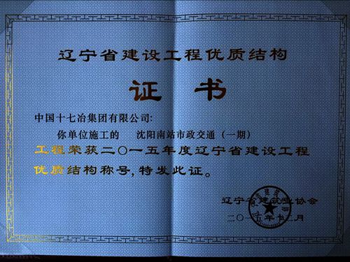 329日,在辽宁省建筑业协会五届五次理事会暨2015年度工作总结表彰会上,由中国十七冶集团承建的沈阳南站市政交通工程(一期工程),喜获2015年度“辽宁省建设工程优质结构”工程奖。
