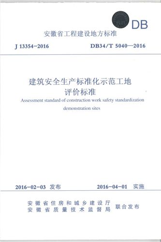 日前,从安徽省住房和城乡建设厅获悉,由公司参编的安徽省地方标准《建筑安全生产标准化示范工地评价标准》(DB34/T 5040-2016)通过省厅组织的专家审查并经公示无异,于201641日起实施。