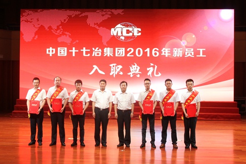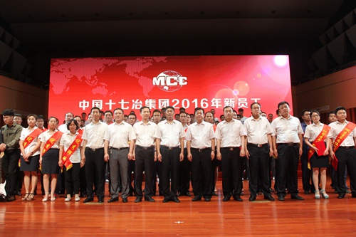 717日下午,中国十七冶集团在马鞍山市保利大剧院隆重举办2016年新员工入职典礼。公司领导喻世功、刘安义、尹万云、蔡进、曹永忠、王振堂、陈阳、伍昌国、唐克斌,公司总经理助理、副三总师,总部机关部门负责人,各二级单位党政领导、人力资源部、团委负责人,以及部分优秀青年代表、优秀师徒代表和257位新入职员工等350余人参加了典礼。