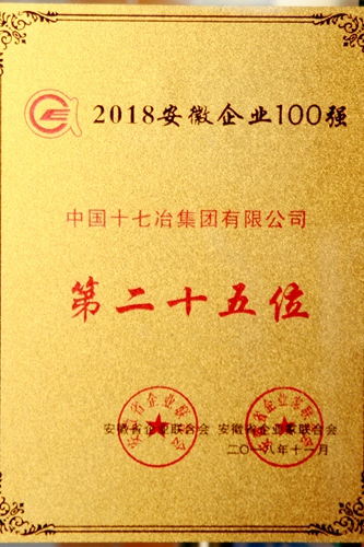 11月10日,安徽企业高质量发展论坛暨2018安徽百强企业发布会在合肥举行,中国十七冶集团位列第二十五名,在去年的基础上又前进三位。公司还于11月7日荣获中国企业联合会和中国企业家协会联合颁发的“企业信用评价AAA级信誉企业”荣誉。