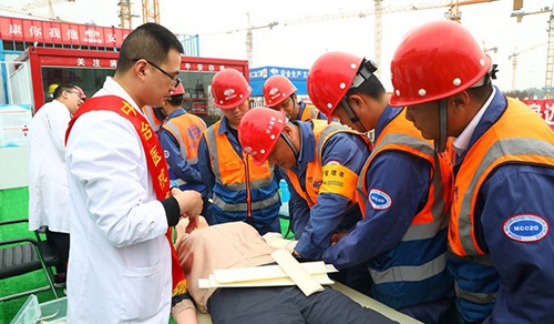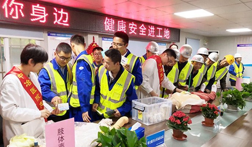 428日上午,中国十九冶职工医院组织多名医护人员到攀枝花火车南站项目部,开展了以“健康关爱送工地  安全生产促发展”为主题的企业开放日宣传活动,向辛勤工作的“西部铁军”战士们表示致敬。活动中,针对工地上可能发生的突发情况,医护人员以PPT和假人演示的形式讲解了心肺复苏、四肢及脊柱骨折固定、外伤包扎及处理以及炎热夏季防中暑等知识;现场为数十名员工测量血糖、血压,进行糖尿病及高血压的筛查和健康咨询服务;发放健康知识手册及宣传单100余份,并送去一批防中暑药品。本次企业开放日宣传活动,收到了政府部门及工会系统相关领导、社会公众代表与主流媒体的好评,项目部全体员工表示要将公司对一线员工的关爱化作动力,努力完成各项施工任务,确保项目优质高效完成。