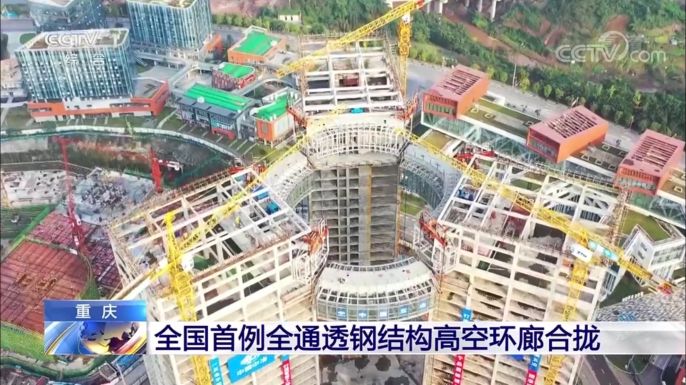 112日,央视综合频道(CCTV-1)、新闻频道(CCTV-13)《朝闻天下》栏目重磅推出新闻“重庆:全国首例全通透钢结构高空环廊合拢”,详细报道了项目吊装提升合拢有关情况,再一次引发“瞳孔震动”,进一步提升了中冶品牌影响力与美誉度。报道指出,不同于以往的钢结构高空环廊,这枚高空环廊提升难度极大,项目采用了全国领先的钢梁同步提升技术,并在前期大量通过BIM这一建筑信息数据模型进行电脑仿真,提前模拟出最合理的施工方案,最终将环廊安装到近百米高的“云端”,该环廊的整体提升工程对于国内的同类型施工建设都具有超前的创新示范意义。