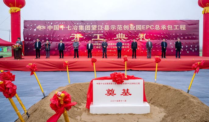 11月13日上午,中国十七冶集团承建的安徽望江县示范创业园EPC总承包工程举行开工仪式。望江县委书记李跃云,县委副书记、县长霍辉,县人大常委会主任汪洁,县政协主席钱和森,县委常委、常务副县长陈宏,中国十七冶集团副总经理曹永忠,总经理助理钟华彪等参加了开工仪式。