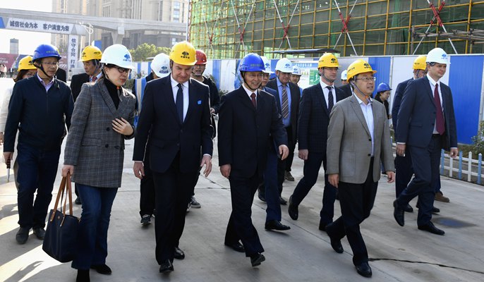 11月16日,乌克兰国立航空航天大学校长尼古拉·尼切巴鲁克、副校长谢勒盖·马尔科维奇、副校长伏地米·帕维利科夫等一行人到十七冶安徽工程大学项目考察。安徽工程大学党委委员、副校长郭兴众,乌克兰中国商贸商会主席陈忠烽,十七冶项目部领导班子成员陪同考察。