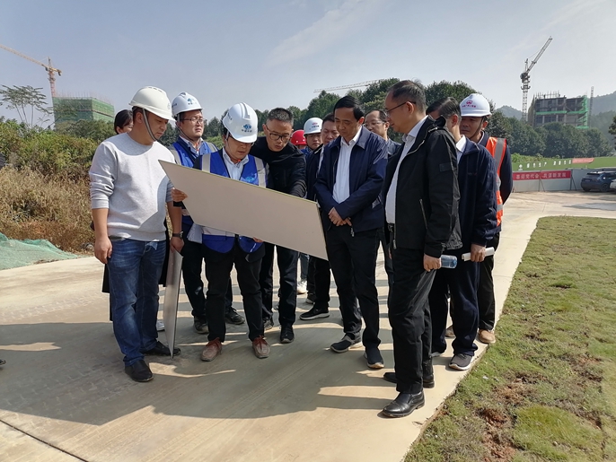 刘锋书记一行实地察看了项目施工现场,了解现场施工进度等情况,并观看了智慧工地展馆。在项目现场,项目负责人汇报了项目规模、建设周期、资金状况等方面概况,演示了BIM建设、劳务实名制管理等项目智慧工地建设,并对冬季施工、工期进度计划等方面工作安排进行了详细讲解。刘锋书记对项目所取得的各方面成绩表示了充分的肯定,并强调,相信十七冶能彰显央企责任担当,为景德镇市缔造一座精品工程。