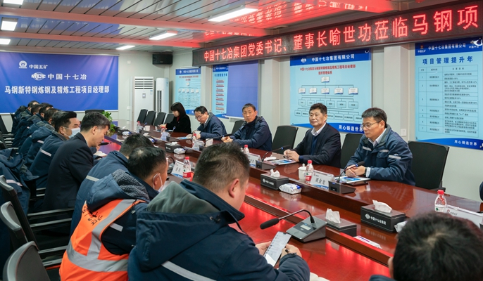 喻世功董事长一行深入马钢新特钢项目现场,了解春节期间项目安全预案制定、值班人员安排以及员工生活保障等情况,在听取项目负责人关于春节期间工作安排的汇报后,高度赞扬了团队攻坚克难、无私奉献的精神,勉励大家以更饱满的精神状态、更强烈的使命担当,在新年取得更好成绩、更大光荣。喻世功董事长表示,马钢的建设凝聚了几代十七冶人的心血,马钢新特钢项目建设至今受到业主高度评价,得益于大家的拼搏与奋斗,希望全体十七冶冶金人在新的一年里踔厉奋发、勇毅前行,擦亮十七冶“冶金建设国家队”的金字招牌,全力以赴推动高质量发展。