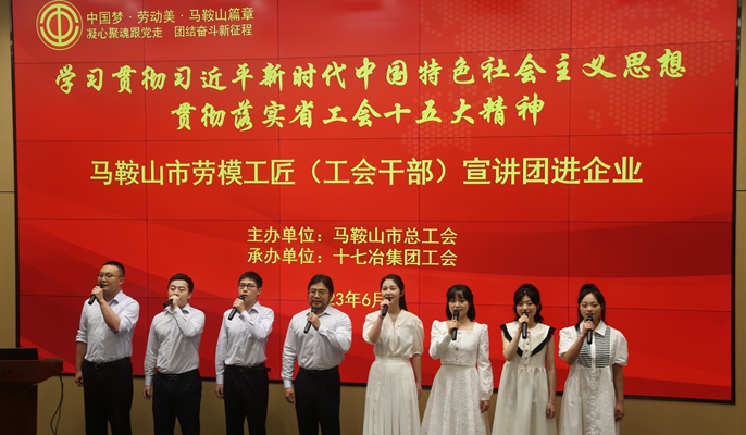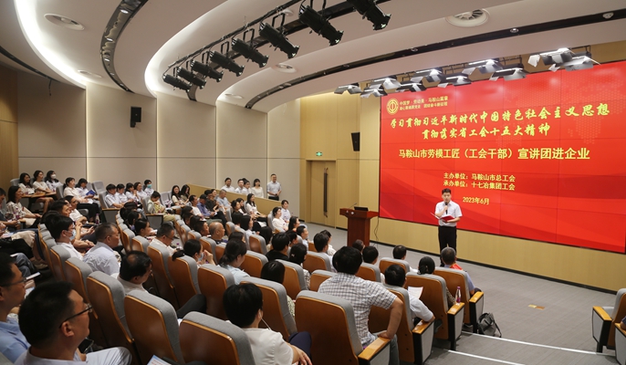 为庆祝中国共产党成立102周年,深入学习贯彻习近平新时代中国特色社会主义思想,认真贯彻落实省总工会十五大精神,6月29日下午,马鞍山市总工会走进中国十七冶,组织开展了“中国梦·劳动美·马鞍山篇章——凝心聚魂跟党走 团结奋斗新征程”马鞍山市劳模工匠(工会干部)宣讲团进企业活动。市总工会党组书记、常务副主席毛善群,中国十七冶副总经理、工会主席魏致家出席了活动。