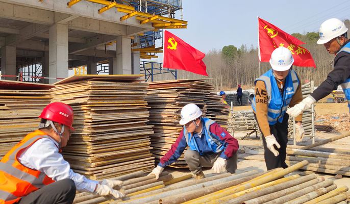 本项目占地198亩,包括教学楼、学术报告厅、图书信息中心和教辅用房、室内体育馆、学员宿舍等9栋单体,总建筑面积约8.6万平米。党支部自成立以来,深刻理解、准确把握中国五矿“五大核心要义”,充分利用“智慧党建”平台,常态化坚持好“三会一课”、积极开展“党员身边无事故”“党员科技创新成果宣讲”等主题党日活动。项目党支部积极深化“党旗飘扬、党徽闪光”行动,通过设置3个党员示范岗、成立3支党员突击队、划分3个党员责任区等,广泛开展了“四个一批”建设,在扎实推进党建工作与生产经营深度融合中提升质效,以高水平党建引领项目高质量建设。