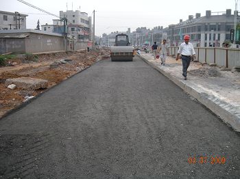铜芜路改造工程水泥稳定基层的施工为年底快车道通车奠定了基础。