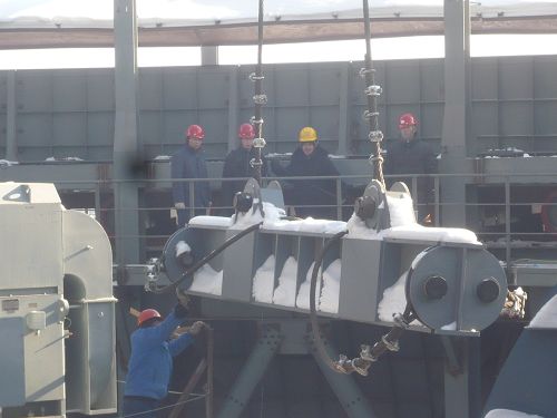 一线施工队伍为了争取时间多干活,把食堂搬到工地,在零下20多度的恶劣天气条件下铲雪抢工期。烧结室23.5米平台上北风呼呼、焊光闪耀,工人们挂着安全带在快而有序的忙碌着,夜晚加班至八、九点钟,只要有一点施工条件,他们就组织力量进行施工,保证工程进度和安全、质量。