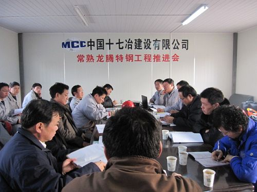 公司总经理助理王青山指出:常熟龙腾特钢工程从开工到现在干得有声有色,施工现场热火朝天,各项工作有序展开,项目部参战人员工作激情高,过程控制有序,前期工作有亮点。他要求系统地做好网络工期安排,控制好阶段性重点。要抓好节前工程安排和节后工程的衔接工作。同时注意加强工程的质量和安全工作的管理。针对春节即将临近,做好廉政建设工作,坚决杜绝违规违纪现象的发生。