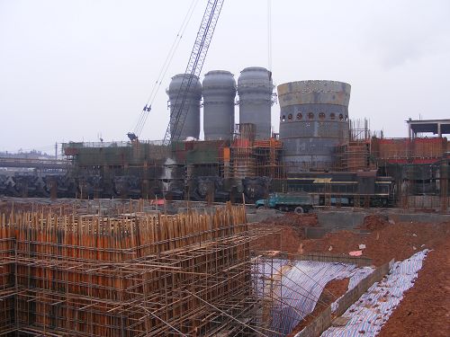 安钢1080m3高炉四大节点:热风炉炉壳安装计划十四带,现已完成第十八带;高炉安装计划第四带,现已完成第六带,该两项节点已超额完成业主要求的工程节点。最难的是出铁场平台和矿槽深基坑开挖和砼浇注的两大节点。该两节点的施工地点均在老厂三座生产高炉的铁道主线上,每几分钟就有一列火车通过,加之萍乡地区天气连续阴雨,给深基础开挖等施工带来诸多困难。根据这一情况,为完成节点,安钢项目部领导与城建公司领导协商决定,从马鞍山调来40余名精兵强将,在节前赶到萍乡施工现场,经过项目部全体参战人员共同努力,日夜奋战,分别于2月7日、2月8日砼浇注完工。