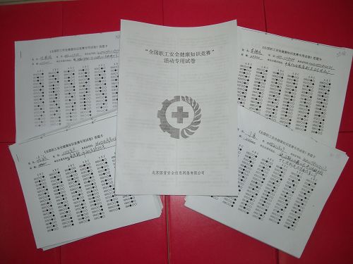为配合目前在全国开展的“安全生产月”活动,结合我公司 “安康杯”竞赛活动的特点,按市总工会的要求,近日,公司工会向各二级工会分发了580份“全国职工安全健康知识竞赛试题”。经过两级工会的认真组织,收回答题卡559份,且答题质量良好。