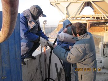 物流与装备成套公司山东搅拌站自今年10月中旬建成以来,积极发挥其要素职能,从商品砼的生产、供应、浇筑等方面为项目做好周到的服务。进入冬季后,寿光的冬天风大气温低,12月18~19日这两天达到了–10℃,这种天气给该公司的搅拌站正常生产带来多种困难。水路、气路、阀门冻到打不开,黄砂结成冰块。但项目工期紧,驻项目全体员工切实想用户所想,急用户所急,努力践行“让用户永远感念你”的服务理念,群策群力、团结协作,来保证项目工期需要。他们利用薄毯及建站时剩余的彩瓦为简易机穿衣保暖、挡风;气路、水路不通拆下管子用温水烫通再安装;阀门打不开拆下重新安装。通过这些行之有效的办法,保障了施工现场商品砼的正常生产,确保了项目工期需要。他们吃苦耐劳、善打硬仗、攻坚克难的精神赢得项目部的好评。