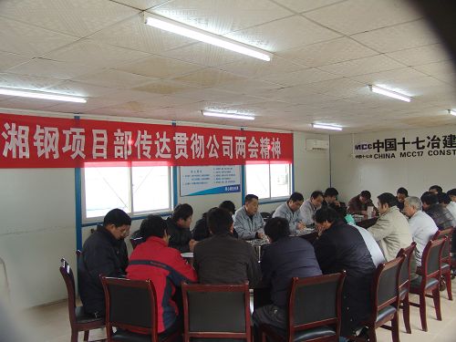 项目副经理余志忠在会上要求:项目部要认真学习贯彻公司的两会精神,用两会精神来指导我们今后的工作。结合两会的学习,要树立紧迫感、使命感、责任感、危机感和对冶金版块激烈竞争预见感。落实湘钢工程的收尾工作,抓好经营决算、资料整理,及时回笼资金,维护节前稳定。要以“效率第一,用未来思考今天”的核心价值观为指导,把公司的两会精神落实到实处。坚持“高效严禁,精细务实”的企业作风,干好在手工程,实现公司的跨越式发展的宏伟目标。