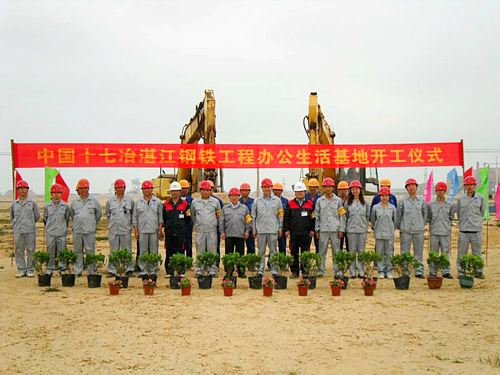 4月17日上午9点17分,十七冶湛江钢铁工程办公生活基地开工仪式在施工现场举行。公司总经理助理钟华彪、湛江分公司经理正清、分公司机关、各项目部员工及外协单位代表参加了开工仪式。