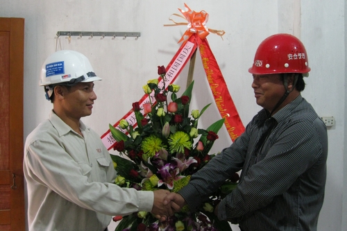 930下午,业主方越南VCM总经理范友秋先生来到越南广福项目部,与项目部员工共庆中国的节日并赠送了精致的花篮和慰问品,对中国十七冶在越南项目上做出的贡献表示谢意。