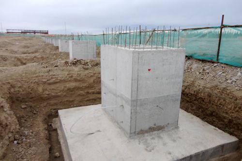 施工中,新疆分公司项目部精心组织,科学管理,克服昼夜温差大、施工资源紧缺、可用工期短以及风沙大等不利条件,争抢工期,仅用了17天时间就完成54个柱基础的浇筑,确保了施工节点,履行了对业主的承诺。另外项目部还完成了工程一期和二期围墙基础开挖1400
