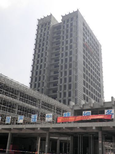 5月27日上午,由市政工程技术公司承建的花山区软件园项目外立面装饰工程的钢龙骨安装隐蔽工程一次通过马鞍山市质量监督站检查组的验收。 软件园项目外立面装饰工程是目前马鞍山市最高的幕墙工程。其高78.1米,包括20824.64m2石材幕墙和636.06m2玻璃幕墙工程。检查组在施工现场查看了主材的质量,仔细检查了焊接材料的复检情况和石材幕墙钢龙骨焊缝表面、组合焊缝尺寸等主控项目。