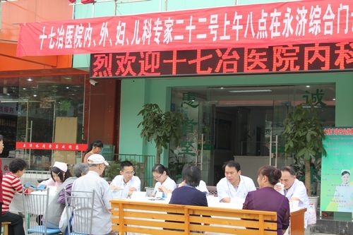 922,十七冶医院医疗服务部组织了内科、外科、儿科、消化科、内分泌科等医疗专家前往山明水秀社区的永济综合门诊联合开展义诊活动。