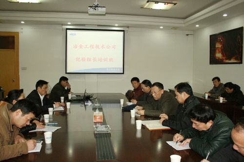 24下午,冶金工程技术公司召开纪检(监察)组长培训、述职会议,公司党委书记、纪委书记周美初、监察部全体人员、各分公司、项目部、工程处纪检(监察)组组长30人参加会议。