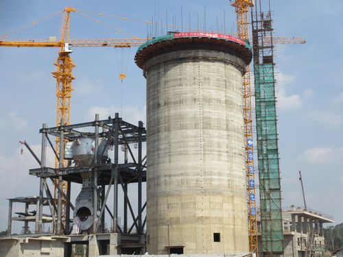 此次滑模的生料库直径18m,高54m。为保证滑模质量,项目部从国内选调了专业的滑模队伍,从劳动力分配、安全施工和技术质量等方面做了充分准备。920日,滑模正式开始,全体参战员工克服了印尼高温酷暑等困难,连续奋战10个日夜,顺利完成了生料库滑模工作,为后续各节点争取了宝贵时间。到顶的生料库无论砼观感和质量都达到标准要求,受到业主和监理单位的充分肯定。