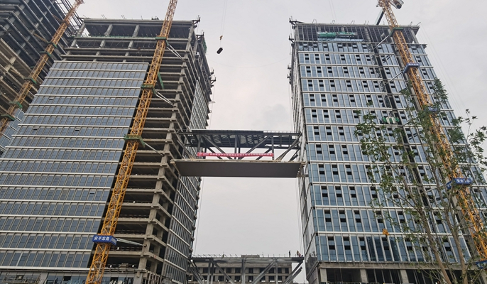 6月25日上午,中国十七冶集团陕西分公司承建的中冶集团西北区域总部项目圆满完成首件钢结构连廊高空提升工作。