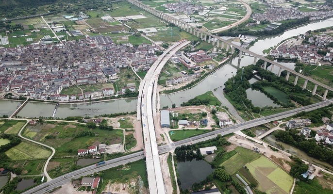 浙江缙云330项目完成岩西跨线桥及新建溪大桥梁板架设