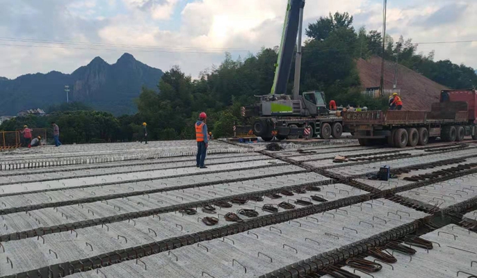 东渡中桥全长48米,共计63片梁板。为保证梁板架设顺利完成,项目部积极克服工期紧、任务重、高温天气及连续阴雨等诸多不利因素影响,根据施工情况不断优化施工方案,确保人员、机械、材料配备到位,抢抓晴好天气快速推进进度,努力提高施工效率;对作业人员进行详细的安全技术交底,施工过程中安全员全程值守现场,全力排除安全隐患,确保梁板架设安全进行;不断强化施工质量管控,严格按照架梁方案施工,确保梁板架设精准就位,于8月7日顺利完成全部梁板架设工作,对保障工期节点起到积极作用,大大提升了员工士气,对后续桥梁梁板架设及桥面系施工具有重要意义。