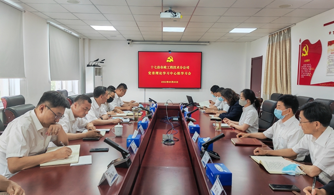 6月6日下午,中国十七冶市政分公司党委理论中心组专题学习研讨习近平总书记关于安全生产重要论述,分公司领导班子成员、经理助理、副三总师、机关各部门主要负责人等参加学习。