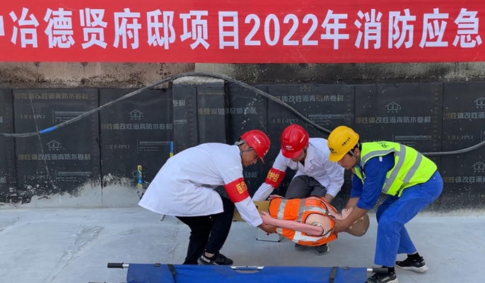 30日,中冶·德贤府邸项目开展消防及高处坠落应急救援演练,模拟了项目材料堆放现场因违规吸烟、乱扔烟头造成材料失火且撤离中出现高处坠落事故的情境,安全员发现起火后立即发出警报,组织人员有序撤离起火区域,项目部迅速启动应急预案,通知各小组进入工作状态,查明火情,疏散人员,救治伤员,扑灭烈火。整个演练过程紧张有序,各小组分工明确、忙而不乱,使伤员在最短的时间得到最有效的救护,达到了演练预期效果。