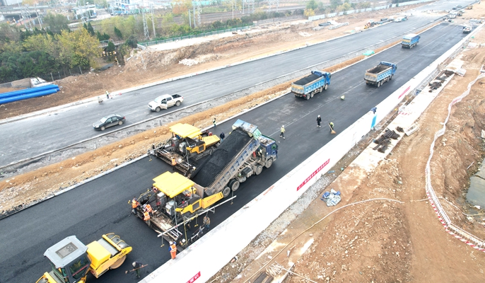 青岛唐河路-安顺路首段上面层沥青摊铺完成