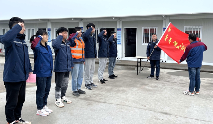 授旗仪式上,项目党支部代表强调,全体团员青年要以党的二十大精神为引领,坚定“一创两最五强”奋斗目标,立足岗位实际,投身项目建设,切实发挥“青年突击队”的先锋模范作用,扛起旗帜、扛起责任,高质量完成项目建设目标。团员青年们接过旗帜并表示,将以“最艰苦的担子我们挑,最危险的地方我们去;最紧急的关头我们上,最困难的时刻我们到”为团队精神,充分发挥团员青年的生力军作用,立足一线、迎难而上,为确保工程如期交付贡献青年力量。
