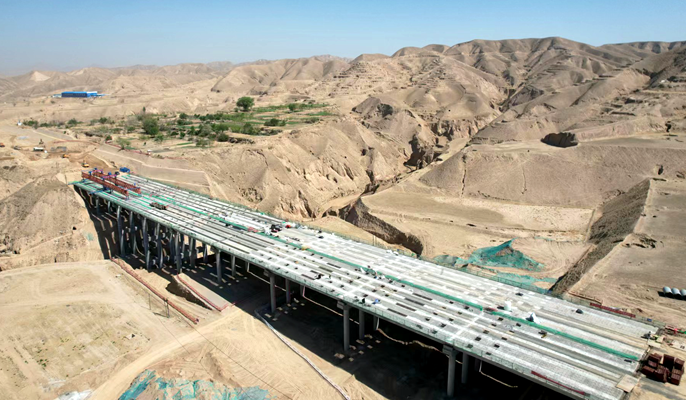连霍高速兰州清忠段槽沟大桥全幅贯通