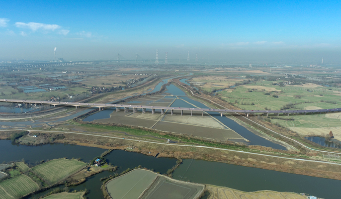 G236国道是国家公路网规划(2013 年到2030 年)中的47条北南纵线国道中的一纵,G236黄浒河特大桥及连接线建设工程位于芜湖市与铜陵市交界处,是G236国道重点工程之一,全长3.35公里,按一级公路标准建设,设计时速80公里,路基宽度32米,双向六车道,沥青混凝土路面,共设置桥梁2434.5米/2座,其中黄浒河特大桥长2157.5米。本工程紧扣“交通强国建设纲要”战略布局,落实国家公路网规划,对完善铜陵周边路网连接、发挥公路网疏港功能、改善沿线区域对外出行条件、带动沿线乡镇经济发展具有重要意义。