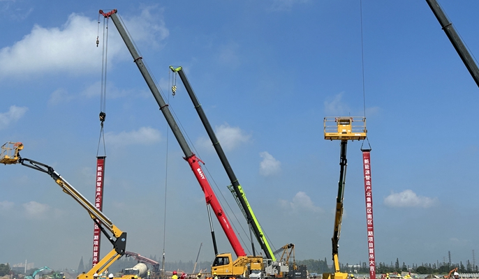 马鞍山新能源智造集聚区南区一期项目钢结构首吊