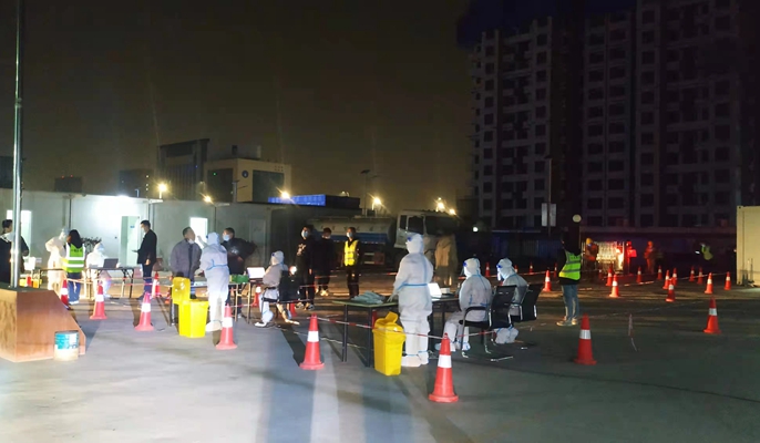 在生活区的“叫醒”工作结束后,苏旭旭便马不停蹄地赶往工友返回项目的途经点进行人员一一核查,再次确保每一名工友都按照防疫要求进行核酸检测、确保核酸检测工作全覆盖、不漏一人。