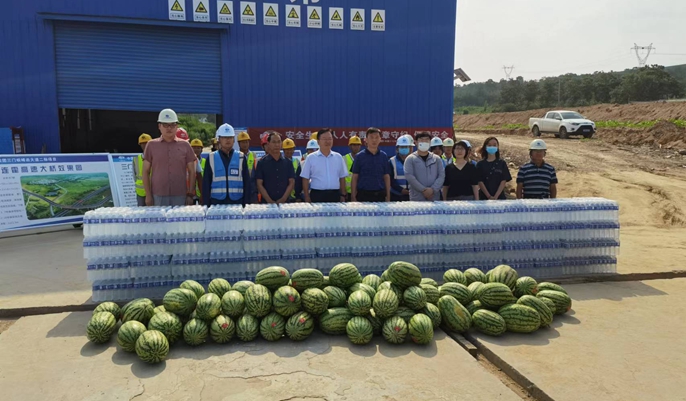 王广峰副主席一行来到梁场、三张路口等地,详细询问项目施工进度,了解工地避暑措施,走访慰问在高温酷暑下坚守岗位、辛勤劳动的工作人员,并为他们送上矿泉水、西瓜等夏季防温降暑物资。王广峰副主席表示,开展向一线职工“送清凉”活动,是关心职工生活,落实以人为本,促进安全生产的重要举措,项目部要积极担当社会责任,在抓好工程进度和施工安全的同时,把防暑降温工作落到实处,要积极采取防暑降温相关措施,合理安排作息时间,切实保障一线工作者的身心健康。