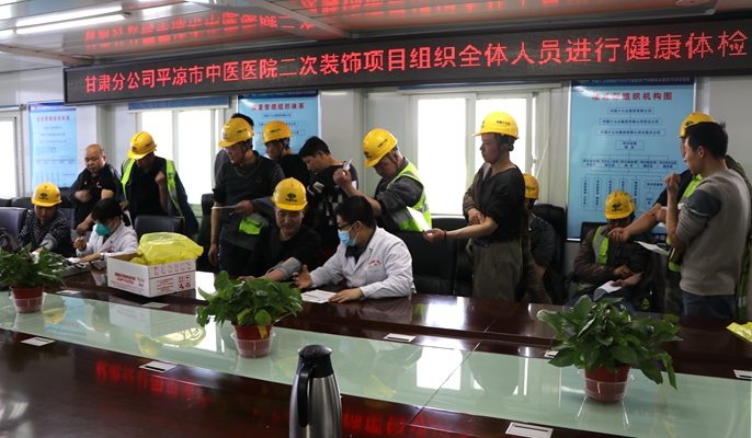 3月31日,中国十七冶甘肃分公司平凉市中医医院二次装饰工程项目部组织开展爱心体检活动,为460多名一线作业人员送去健康与关心。