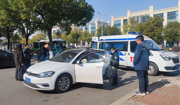 当天,郁震一行午休时在中国十七冶技术中心大厦北侧的湖南路散步,听到附近小孩哭声后,迅速赶到前方一辆亮起红灯、打着双闪的轿车,发现车内一名女司机呈现昏迷状态,身体蜷缩,随时可能晕倒。杨天亮与焦元耀第一时间安抚小孩情绪,打开车窗通风;秦玉欢与徐莉摘下女子口罩,放倒汽车座椅,让女子更好休息;与此同时,郁震已经拨通急救中心电话,“我们在中国十七冶技术中心大厦西北交叉口以西50米,发现一名突发疾病的患者,意识模糊,情况危急,请迅速救援!”在救护车到达现场后,大家在与救护人员沟通病情的同时又暖心地安抚患者和小孩。在中国十七冶职工的帮助下,12时20分,患者被紧急送至附近医院。