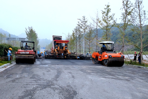 为保证路面沥青混凝土顺利摊铺,项目部克服工期紧、任务重等诸多困难,精心组织,周密部署,采用科学的组织管理方式,合理调配人员、机械设备,提高工作效率;设置两个班组同时进行路面清理和沥青面层摊铺工作,采用多台大型摊铺机及双钢轮压路机进行摊铺、碾压作业,全力推进工程建设进度;认真做好安全和技术交底工作,安排专人现场监督指导,严把安全质量关,保质保量完成各节点目标任务。