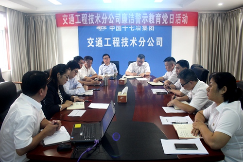 9月6日,中国十七冶集团交通工程技术分公司开展以“知敬畏、存戒惧、守底线”为主题的廉洁警示教育党日活动。交通分公司领导班子成员,公司机关、各部门、在马项目部全体党员、入党积极分子参加了本次活动。