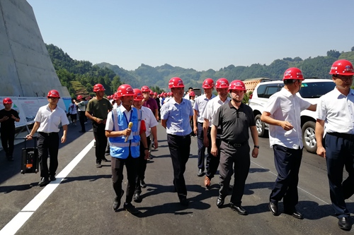 8月13日,贵州省交通运输厅党委书记、厅长高卫东,厅党委委员潘海等一行到中国十七冶集团有限公司交通工程技术分公司承建的遵义至绥阳高速公路现场调研观摩。贵州省交运厅、省质监局、遵义市政府及贵州各市交运局领导和专家80余人参加了现场观摩。